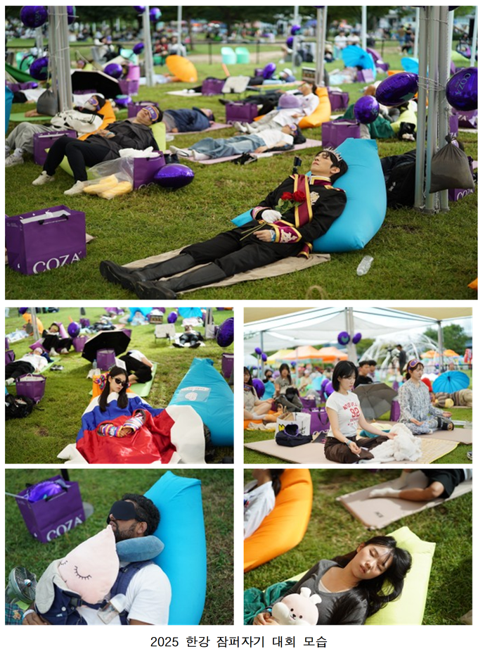 2024년 첫선을 보인 이후 올해로 3회째를 맞은 「한강 잠퍼자기 대회」는, 바쁜 일상 속 시민들에게‘쉼’의 가치를 전달하는 서울시의 대표적인 이색 문화 행사로 자리 잡았다.