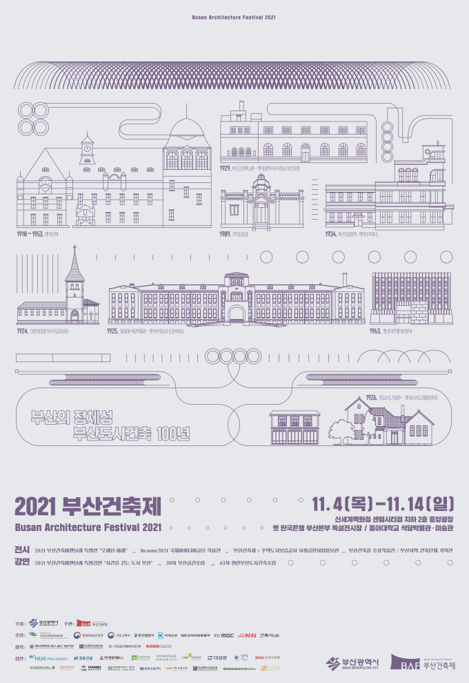 부산시(시장 박형준)와 사단법인 부산건축제조직위원회(조직위원장 서의택)는 오는 4일부터 14일까지 11일간 옛 한국은행 부산본부 특설전시장, 동아대학교 석당박물관, 신세계백화점 센텀시티점 지하 2층 중앙광장에서 ‘2021 부산건축제(이하 ‘부산건축제’)’를 개최한다고 밝혔다.