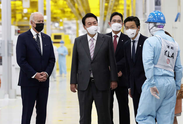 윤 대통령은 이날 오후 경기도 평택 삼성전자 공장에서 연설을 통해 "오늘 바이든 대통령께서 방한의 첫 일정으로 세계 최대 규모의 삼성 반도체 평택 캠퍼스를 방문하신 것을 매우 뜻깊게 생각한다"며 "한미 관계가 첨단기술과 공급망 협력에 기반한 경제안보동맹으로 거듭나기를 희망한다"고 말했다.