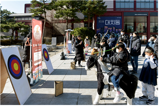 서울역사박물관 광장에서 ‘말타고 활쏘기’ 체험중인 어린이들 |