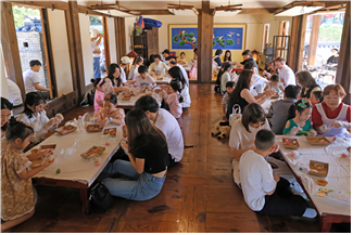 남산골한옥마을 송편빚기 체험중인 시민들 |