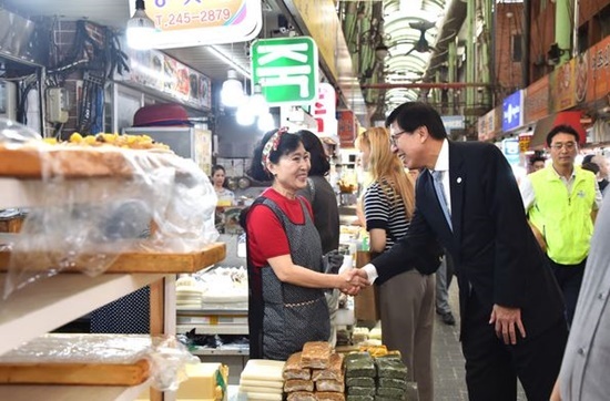 이날 박 시장은 시장 곳곳을 둘러보며 이용객이 겪는 불편 사항을 확인하고, 상인들의 생생한 의견을 들었다.