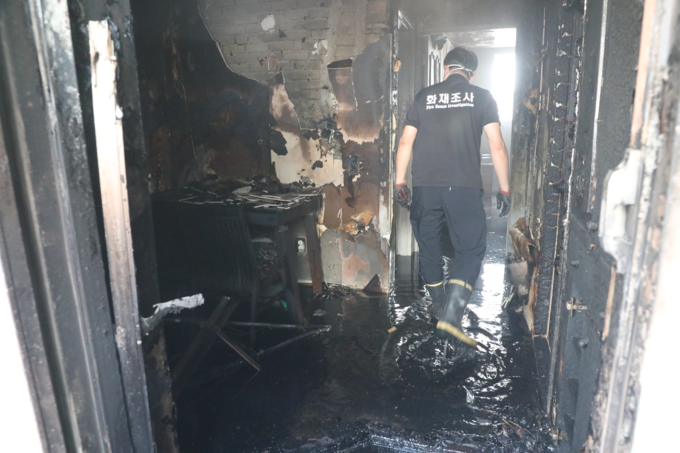 본부는 침대 매트리스 등 가구, 가전제품 등 실제 가정의 거주환경과 유사한 가연물과 조건을 갖추고 피난로(세대 현관문 안쪽)에 리튬이온 배터리를 설치해 화재 실험을 진행했다.
