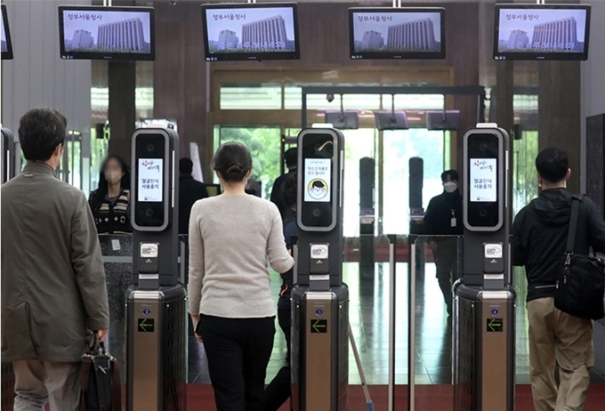 서울 종로구 세종대로 정부서울청사에서 공무원들이 출근을 하고 있다. 2022.5.10 (ⓒ뉴스1)