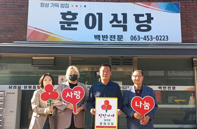[군산/김주창기자] 군산시 성산면 지역사회보장협의체(민간위원장 문정욱, 공공위원장 진미영)가 20일 착한가게로 신규 가입한 ‘쏨헤어(대표 조하솜, 17호점)’와 ‘훈이식당(대표 조창열, 18호점)’에 현판을 전달하며 감사를 전했다.
