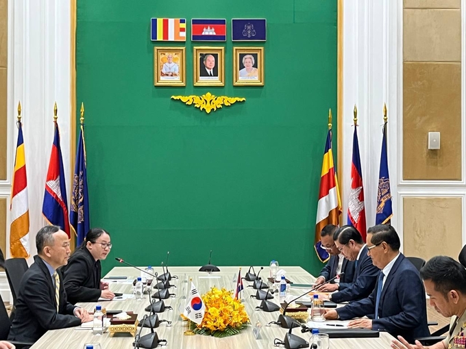[한국방송/박기문기자] 박일 캄보디아 내 재외국민 정부대표는 10.24.(금) 09:00-11:10간 프놈펜에서 속 펄(Sok Phal) 캄보디아 내무부 차관과 ‘한-캄보디아 온라인스캠 공동대응팀(가칭)’ 설립을 위한 1차 회의를 가졌다.