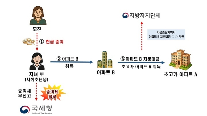 (사례1) 외국인 자녀가 부친으로부터 현금 증여받아 고가 아파트 갭투자하고 증여세 탈루 (국세청 제공)