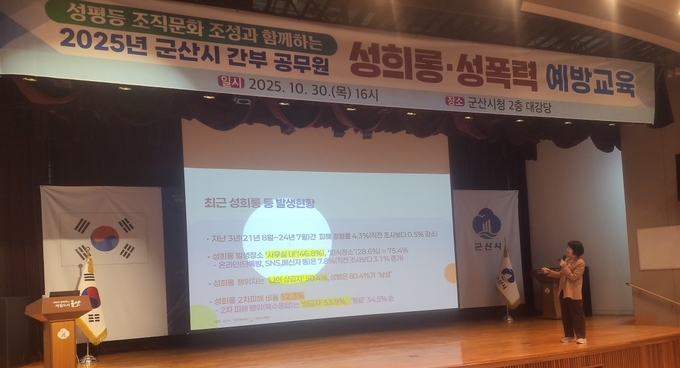 [군산/김주창기자] 군산시가 지난 30일 시청 대강당에서 간부 공무원 90명을 대상으로 성희롱·성폭력 예방교육을 실시했다.