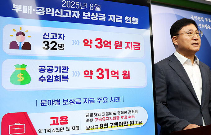 김응태 국민권익위원회 심사보호국장이 세종시 정부세종청사에서 2025년 8월 부패·공익신고자 보상금 지급 현황을 발표하고 있다. 2025.8.26 (ⓒ뉴스1)