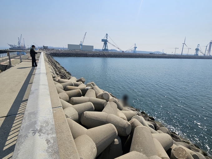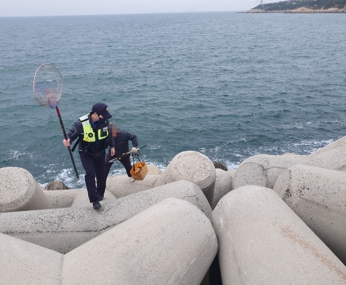 출입통제구역에서 낚시행위를 하다 단속된 사진