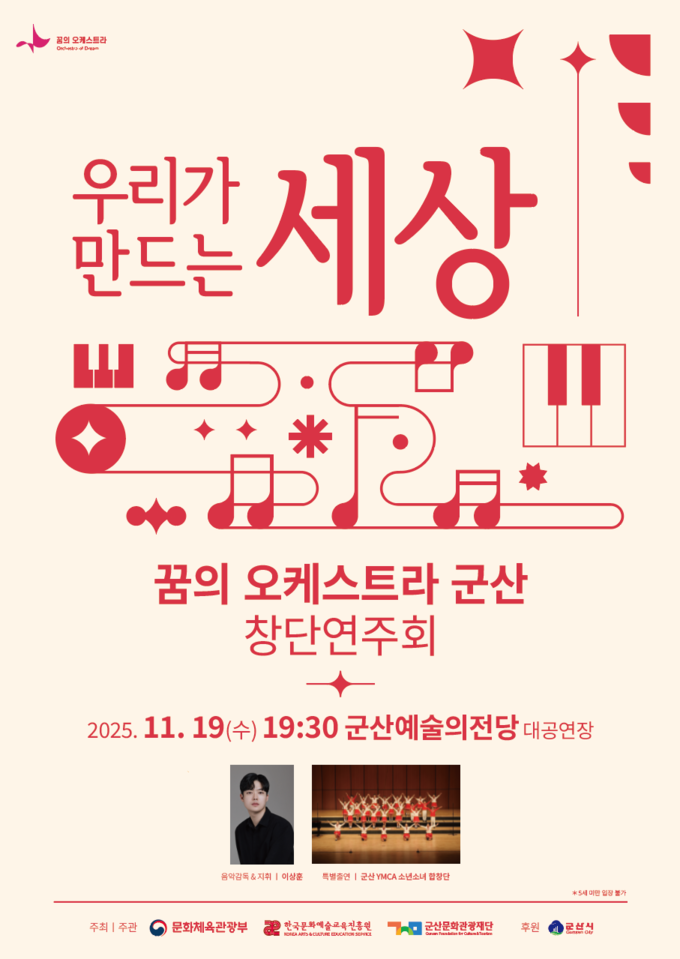 한편, ‘꿈의 오케스트라 군산’은 문화체육관광부가 주최하고 한국문화예술교육진흥원과 군산문화관광재단이 주관하는 사업으로, 베네수엘라의 ‘엘 시스테마(El Sistema)’ 교육 철학을 바탕으로 아이들이 즐겁게 음악을 배우고, 이를 통해 문화예술을 자연스럽게 향유할 수 있는 기회를 제공함으로써, 예술을 통한 성장과 지역사회 내 문화 확산에 기여하고 있다.