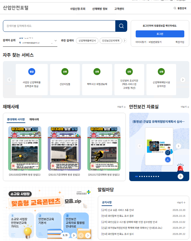 ‘산업안전포털’은 기업과 노동자가 산재예방과 안전보건 활동에 필요한 서비스를 한 곳에서 손쉽게 이용하고, 사업장 특성에 따라 필요한 정보를 맞춤형으로 안내하는 온라인 사이트다.