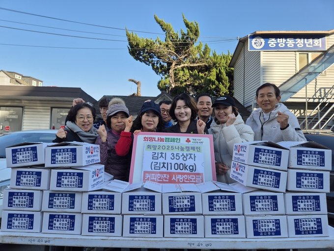[경산/김근해기자] ‘커피 한 잔 사랑 한 모금(커사랑)’봉사단체(회장 민향심)은 18일 직접 담근 김장 김치 35상자(3kg들이)를 중방동행정복지센터에 기부했다. 이번 김장 김치는 시중에서 구매한 재료가 아닌, 자원봉사자들이 직접 재배한 배추와 농작물을 사용해 절임부터 양념 제조, 담그는 과정까지 모두 손수 진행하며 따뜻한 정성을 더했다.
