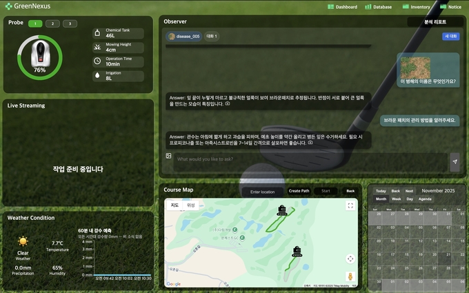 또 관리자와 작업자가 동시에 확인할 수 있는 잔디 관리 플랫폼을 개발해 잡초 탐지, 사전 발견·예측 기능 등을 추가해 현장에서 필요로 하는 실질적 기능을 구현했다.