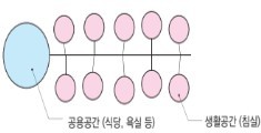 [기존] 기숙사구조(복도식 형태) [개선] 유니트케어 구조(공용공간 형태)