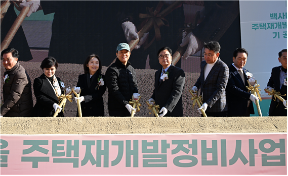 [서울/박기문기자] 서울 마지막 달동네로 불리는 백사마을(노원구 중계본동 30-3번지 일대)의 주택재개발사업이 16년 만에 정상화되며 첫 삽을 떴다. 서울시는 1일(월) 오전 10시 20분 기공식을 개최해 최고 35층 총 3,178세대 규모의 명품 주거단지로 거듭날 백사마을의 새출발을 알렸다.