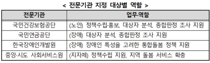 대상자의 의료적 필요도와 일상생활 돌봄 요구도를 종합적으로 판단하기 위한 조사 업무는 국민건강보험공단 또는 국민연금공단에 위탁할 수 있도록 했다.