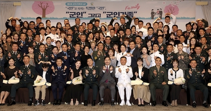 서울 용산구 용산어린이정원에서 열린 '제1회 군인가족의 날' 기념행사에서 모범군인, 군인가족들이 기념촬영을 하고 있다. 2024.9.27 (ⓒ뉴스1)