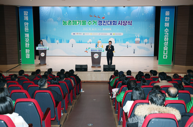 도는 16일 홍성문화원에서 박정주 도 행정부지사를 비롯해 송근선 한국환경공단 충청권본부 자원순환관리처장, 정해웅 농협중앙회 충남세종본부장, 이민수 한국농어촌공사 충남본부장, 성낙구 도 새마을회장, 시군 관계자 등 200여 명이 참석한 가운데, ‘2025년 농촌폐기물 수거 경진대회 시상식’을 개최했다.