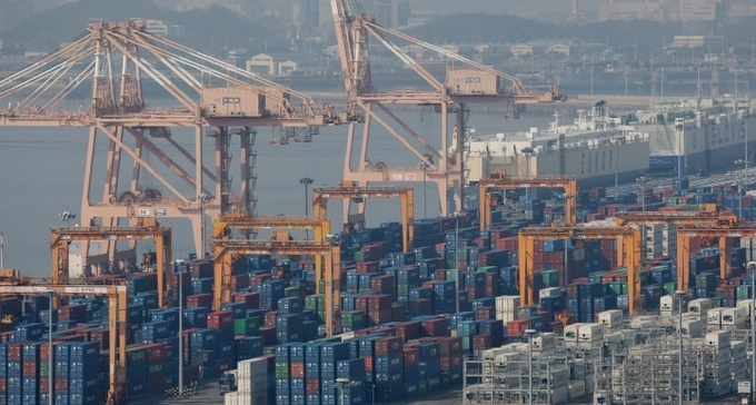 경기 평택시 포승읍 평택항 수출 야적장에 컨테이너들이 쌓여있다. 2025.2.14 (ⓒ뉴스1)