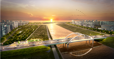 세계 최대이자 국내 유일의 종방향 원형주탑(직경 55m) 사장교로 독창적인 랜드마크 장대 교량과 순환링 도로 이용자를 위한 쉼터가 설치된다.