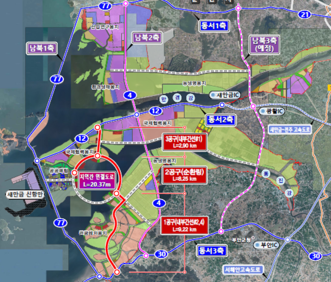 아울러, 새만금 신항만・국제공항・인입철도 등 주요 국가 인프라와 연계되는 구조로 계획되었으며, 2030년 완공을 목표로 추진된다.
