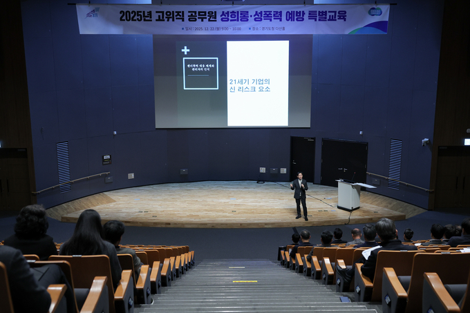 [경기/김명성기자] 경기도는 22일 경기도청 다산홀에서 김동연 경기도지사를 포함해 고위직 공무원 약 50명을 대상으로 ‘직장 내 성희롱·폭력 예방 특별교육’을 실시했다.