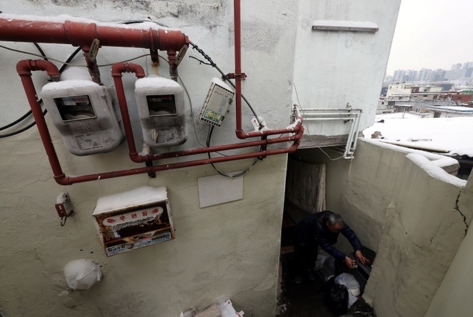 26일 서울 용산구 동자동 쪽방촌의 가스계량기에 눈이 쌓여 있다. 2023.1.26 (사진=연합뉴스)