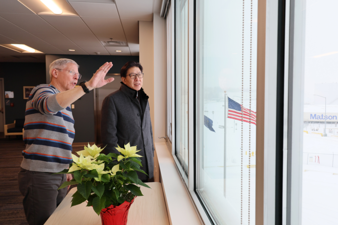박 시장은 1월 5일 돈 영 알래스카 항만(구 앵커리지 항만)을 방문해 항만 운영 현황과 물류 기반 시설(인프라)을 시찰했다.