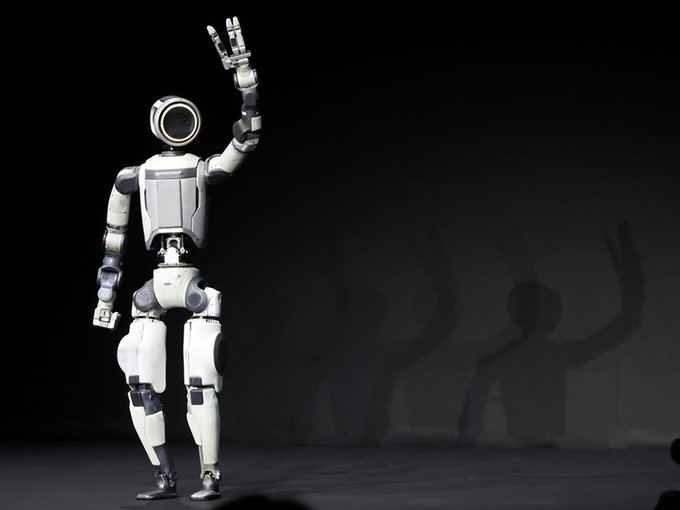 세계 최대 가전·정보기술(IT) 전시회 'CES 2026' 개막을 하루 앞둔 5일(현지시간) 미국 네바다주 라스베이거스 만달레이베이에서 열린 현대차그룹 프레스 컨퍼런스에서 휴머노이드 로봇 아틀라스가 관객들에게 인사하고 있다. 2026.1.6(ⓒ뉴스1)