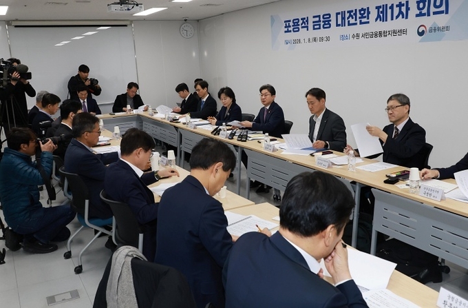 금융위원회는 8일 열린 '포용적 금융 대전환 1차 회의'에 정부·유관기관뿐만 아니라 5대 금융지주와 포용금융 민간전문가도 참석해 정부와 민간이 함께 추진할 포용금융 방향을 모색했다고 밝혔다.