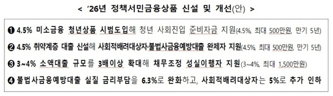 햇살론 등 정책서민금융상품은 이달부터 금리를 인하했으며, 청년·사회적 배려 대상자를 위한 저금리 대출 상품 세부방안을 1분기 중 발표할 계획이다.