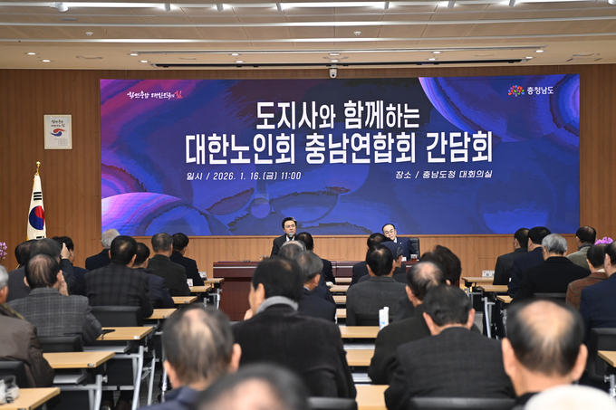 도는 16일 도청 대회의실에서 김 지사를 비롯해 강춘식 대한노인회 충남연합회장, 시군 지회장·부회장, 노인대학장 등 140여 명이 참석한 가운데 ‘대한노인회 충남연합회 신년 간담회’를 개최했다.