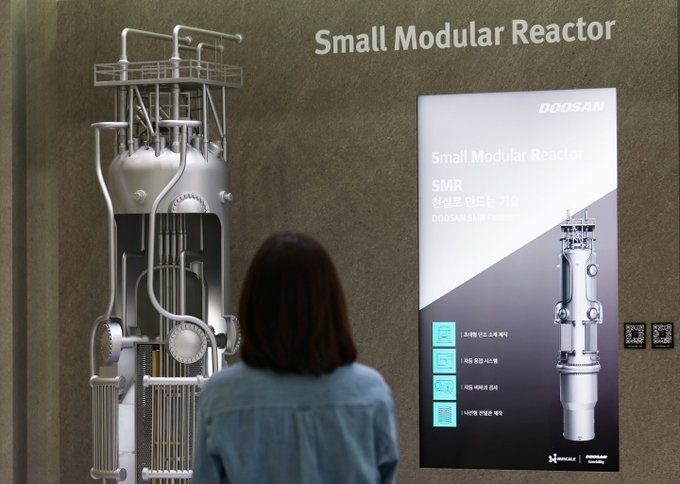 '스마트에너지플러스 2025'에서 관람객들이 소형모듈원전(SMR) 모형을 둘러보고 있다. 2025.10.15 (사진=연합뉴스)