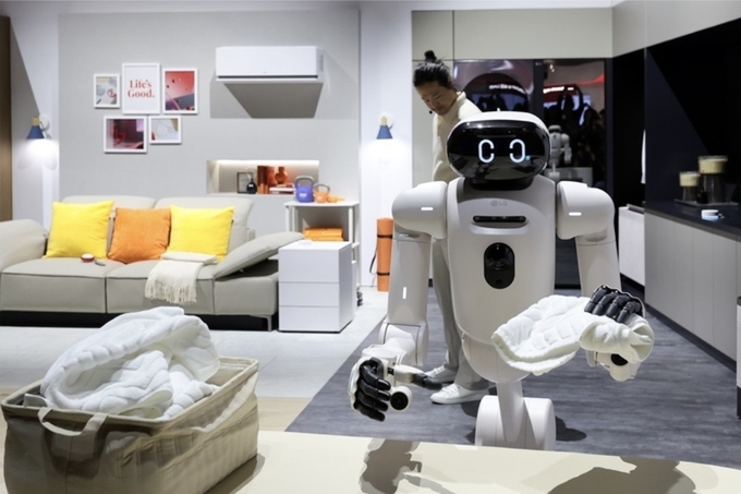 LG 클로이드는 단순 전시물이 아니라 아침 식사 준비, 빨래 개기, 물건 정리 등을 시연하며 집안일 수행자로 활약했다.