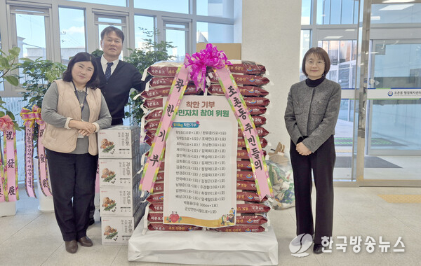 [군산/김주창기자] 군산시 조촌동은 행정복지센터 신청사 개청을 맞아 관내 주민자치위원회(위원장 왕영호) 위원들이 십시일반 정성을 모아 백미 10kg 60포, 두유 30박스를 기탁했다고 27일 밝혔다.