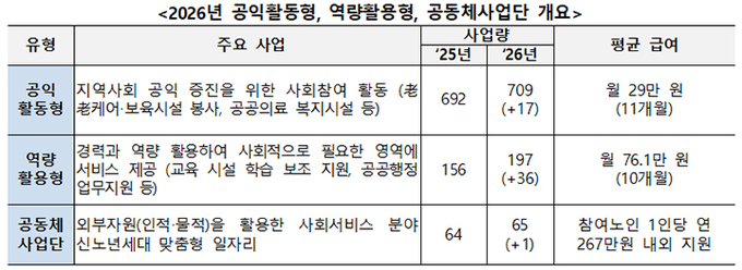 2026년 공익활동형, 역량활용형, 공동체사업단 개요