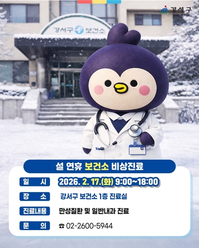 서울 강서구(구청장 진교훈)는 오는 14일(토)부터 18일(수)까지 이어지는 설 연휴 동안 의료공백을 최소화하기 위해 '설 연휴 응급진료체계'를 가동한다고 밝혔다.