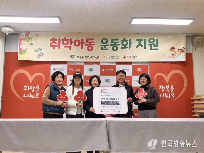 [군산/김주창기자] 군산시 수송동 천사누리 지역사회보장협의체(공동위원장 곽은하, 한종현)는 지난 23일 취학아동이 있는 15가구에 운동화 교환권을 지원했다고 밝혔다.