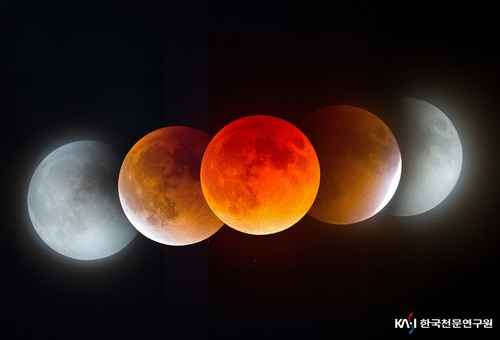이때 달은 완전히 사라지지 않고, 지구 대기를 통과한 태양빛이 굴절되며 붉은빛을 띠게 된다.