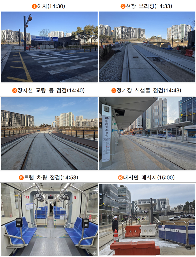 현재 위례선 트램은 실제 노선을 운행하며 시운전과 점검을 진행중이며 오는 4월부터 개통 전까지는 마지막 단계인 철도종합시험운행을 통해 시설물과 시스템 안정성 및 연계성 등을 종합적으로 검증할 계획이다.