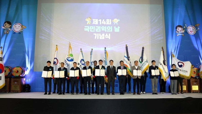 [한국방송/문종덕기자] 국민권익위원회(위원장 직무대리 한삼석, 이하 국민권익위)는 제14회 국민권익의 날(2월 27일) 기념식을 개최하고, 반부패·청렴문화 확산과 국민권익 증진에 기여한 9개 단체, 127명의 유공자에게 정부포상 36점, 위원장 표창 100점을 수여했다.