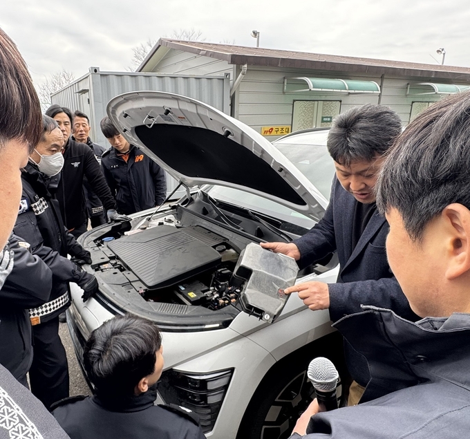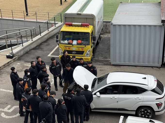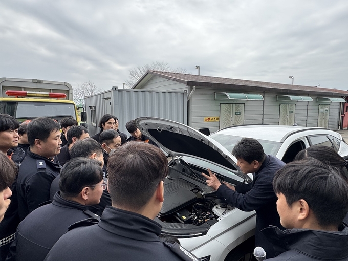 이날 교육은 전기차 구조와 작동 원리, 배터리 특성 및 화재 시 위험 요소 등에 대한 이론교육으로 시작됐다. 이어 ▲전기차 감전 대응 요령 ▲긴급구조를 위한 안전한 견인 방법 ▲사고 발생 시 탑승자 구조 절차 등 실무 중심의 교육이 진행됐다.