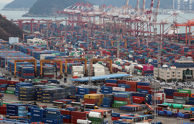 부산항 신선대부두, 감만부두에 컨테이너가 가득 쌓여 있는 모습. 사진은 기사와 직접 관련 없음. 2026.3.6 (사진=연합뉴스)