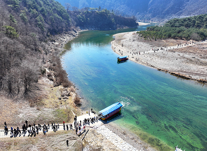 최근 관객 수 1500만 명을 돌파한 영화 '왕과 사는 남자'의 역사적 배경이 된 강원 영월군 청령포에 지난 8일 관광객 발걸음이 이어지고 있다.(사진=연합뉴스)
