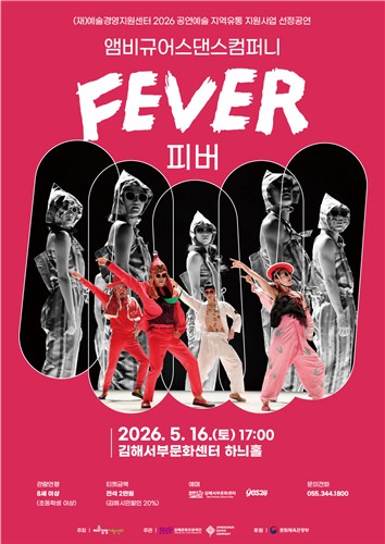 (재)김해문화관광재단(대표이사 최석철) 김해서부문화센터에서 오는 5월 16일 오후 5시 문화체육관광부가 후원하고 (재)예술경영지원센터가 주최하는 '2026 공연예술 지역유통지원사업'의 일환으로, 현대무용단체 앰비규어스댄스컴퍼니의 대표작 'FEVER(피버)'가 공연된다.