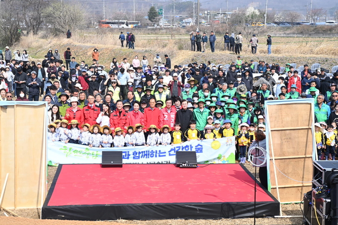 이어 “옛말에 앞사람이 나무를 심으면 뒷사람이 나무 그늘에서 쉬게 된다는 말이 있는데, 오늘 우리가 심는 묘목이 10년 뒤 산사태를 막아내고, 50년 뒤 기후위기를 막아내는 숲이 될 것”이라며 “아이들의 내일과 대한민국의 미래를 위해 정성껏 나무를 심고 가꿔 나아가자”고 강조했다.