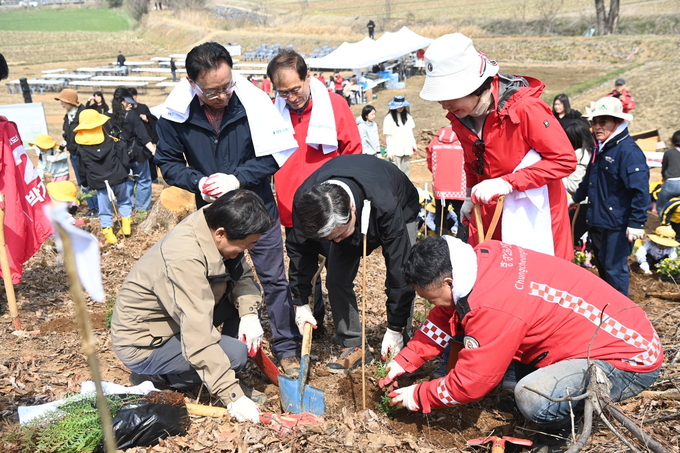 [충남/오창환기자] 충남도는 제81회 식목일(4월 5일)을 앞두고, 3일 공주시 이인면 신영리 공주역 인근 산림에서 나무심기 행사를 개최했다.