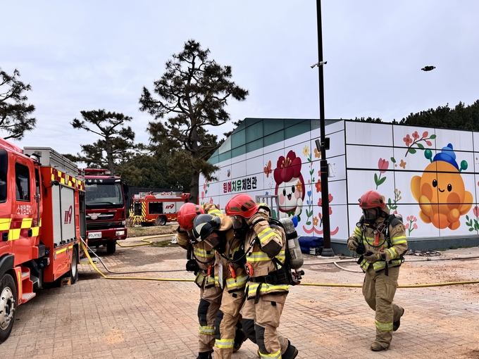 지난 1일 박람회 행사장 내 건물화재와 인파사고를 대비해 실전형 긴급구조훈련을 실시하여 대응능력을 높이고, 행사기간 중 즉각 대응이 가능한 현장 중심 체계를 구축하였다.