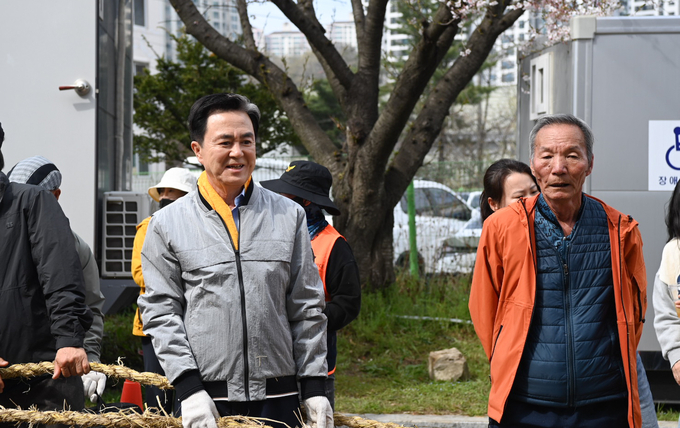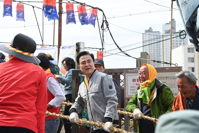 김 지사는 이날 세 판의 줄다리기 가운데 첫째판 시작에 앞서 가진 축언을 통해 “오늘 우리 앞에 놓인 줄은 그냥 줄이 아니라, 500년을 이어온 대화합의 끈”이라며 “윗마을이 이기면 나라가 태평하고, 아랫마을이 이기면 풍년이 든다는 속설처럼 줄을 잡은 모두가 건강과 행복을 끌어당기게 되길 바란다”고 말했다.